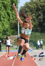 Day 2 started with a long jump of 5,28m followed by one of her weaker events, the javelin with 23.77m. In the final event, the 800m. she led from the gun and ran a PB of 2 min 29 sec. to finish with a PB score of 4425 points in 2nd. place overall.
