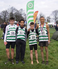 Canaan Solomon’s refreshing honesty when being interviewed on the podium summed up the general reaction to the conditions underfoot at the South of England Cross Country Championships at Parliament Hill. With his U15B silver medal hanging safely round his neck, he answered Joe Mower’s question “...so Parliament Hill; love it or hate it?” with an emphatic choice of “hate it!” (but with a broad grin). Despite this, to grab the silver medal in his first winter as an U15 was an excellent effort and had the conditions been firmer, he may even have improved on it. Canaan’s deficit on surprised winner, Alex Hampson (Nene Valley Harriers) was only 4 seconds, the same as his own advantage on Herne Hill’s Ed Olsen in third.