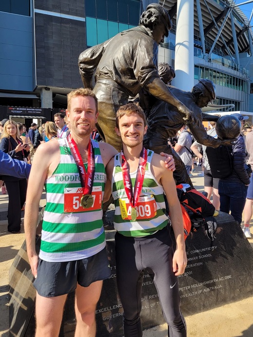 Another Woodford man in the Melbourne race was Julian Russell who returned to his home country earlier this year after many years in London. Darren said, "It was also great seeing Julian a couple of times going round and we caught up over a beer at the end! He ran 2.57 which he said was his target."