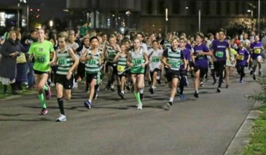 U11 and U13 athletes set off together, 300m behind the senior women and U15/U17 race who set off together. It is an amazing sight with everyone poised for the starters’ pistol, but also hectic getting 100 juniors to synch with seniors and get to the line on-time!