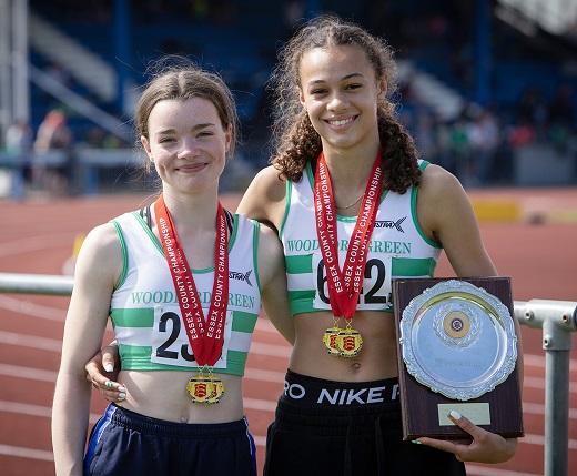 The short sprints event of 100m provided yet more PBs and medals. In the Under 20's men and women both Moyinoluwa Odeniran (men) and Gwendoline Datey (women) won their respective races with 10.85sec and 12.00sec. Marcel Winter, who continues to improve, was 1st in heat 2 with 11.02s, but bettered that time to record a sub 11 second time of 10.92s PB and finish 2nd. In the under 15 boys, Callum Clydesdale and Sammy Geist both ran. Callum was 3rd in heat 2 with 11.94s, a wind-assisted PB, and was 3rd in the final with a time of 12.00s. Sammy was 3rd in heat 1 with a time of: 12.49s. The under 15 girls were loaded with WGEL athletes and Caitlin Hancock led the way in heat 1 with 1st place in 12.75s, Nevaeh Johnson was 1st in heat 3 with 12.75s, Evanna Eze with 2nd in heat 3 in a new PB of: 13.01s and Ishana Malcolm was 6th in the same heat with a PB of: 13.82s. Zoe Hedges was 1st in heat 4: 13.13s, Remi Salako: 13.33s and 3rd whilst Abigail Osagie was 5th in the heat with a PB of 14.66s. In the semi final Caitlin was again 1st in 12.86s, Evanna was 2nd in 13.15s and Remi was 4th with 13.44s and Nevaeh was 2nd in other semi final but was Woodford's fastest with 12.67s. In the final Caitlin continued her winning ways with 1st place with 12.55s, Evanna was 4th in 13.19s and Remi was 6th with 12.27s. Unfortunately due to technical issues when her blocks slipped in the final Nevaeh (DNF).