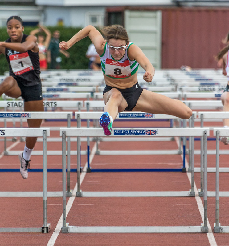 The women’s sprints were similarly windy. In the “A” 100m Gwen Datey placed 4th with 11.90 w secs (+4.6) and Rebecca Matheson won the “B” with 11.78 secs w (+5.6). Rebecca covered the “A” 200m where she was 4th with 24.18 secs w (+3.1) and Gwen won the “B” with 24.12 secs w (+4.3). Over 400m Leah Keisler, in her 2nd race of the day, finished strongly to place 4th with 57.83 secs with Jasmine Mitchell, also in her 2nd race, running very strongly to take the “B” with 58.12 secs. Leah’s prior race had been over 800m where she placed 2nd with 2m11.91 secs whilst Jasmine’s was over 400mH, placing 6th with 64.37 secs. Backing up Leah over 800m was U/20 Kezia Beeton who was 3rd in the “B” with 2m20.35 secs, whilst in the “B” 400mH Rhianna Buaku was also 3rd with 68.56 secs. In the 100mH Jane Davidson dominated a good field as she won by a clear 0.2 secs recording 13.60 secs w (+3.0) and in the “B” Grace Brennan was 5thwith 16.27 secs (+1.8.) The other Woodford women athletes in track action were Louise Gilbert who had led for some distance in the wind over 1500m but eventually finished 3rd with 4m36.56m and Aoibheann Pearce in the 2000m s/ch where she was 4th with 8m26.42 secs.