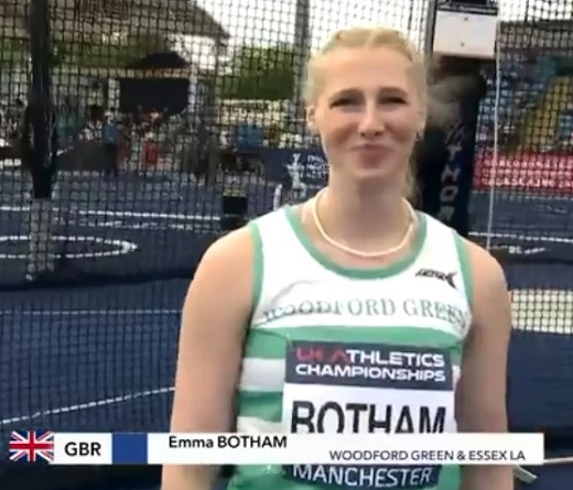 In the women’s discus Danielle Broom, 6th in 43.50, finished just ahead of Emma Botham (42.65). Lucy Marshall narrowly edged out Danielle in the hammer, 56.43 for 7th versus 56.05.
