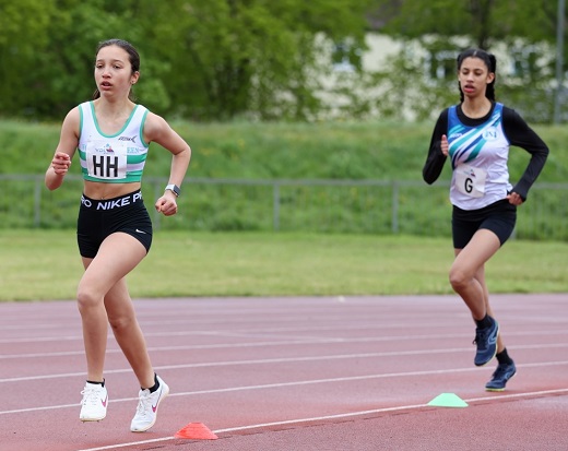 Caitlin Hancock was the a-string in the Under 17 women's 100m and finished 2nd in: 12.56sec and Amira Adeshokah was 1st b-string: 12.95sec. Natasha Wynn was 2nd in a-string in 200m with: 26.50sec and Isabelle Kyson 1st b-string: 27.10sec. Noa produced a good race in the 300m with a win: 41.74sec and Mame-nhyira Coleman was 1st b-string in: 44.68sec.. In the middle distance 800m race Tess Noblet was 2nd with: 2m 29.44sec and Summer Maw: 2m 36.18sec and 2nd b-string. Molly Sherrin won the 1500m in: 5m 03.74sec and Ella Traynor was 1st in b-string: 5m 29.76sec. In the short sprint hurdles Ishana Malcolm was 3rd in a-string: 14.16sec and Daisy Anderson was the only b-string runner with a time of: 14.77sec. The longer hurdles race saw Isabelle Kyson come 1st in the 300m Hurdles: 48.61sec and Daisy Anderson was also 1st in b-string: 50.47sec. Hurdling was also the name of the game as both Ella Traynor and Matilda Frith took part in the 1500m S/C and the only two to do so. Ella ran 5m 56.39sec a-string and Matilda finished in a time of: 6m 08.13sec b-string.