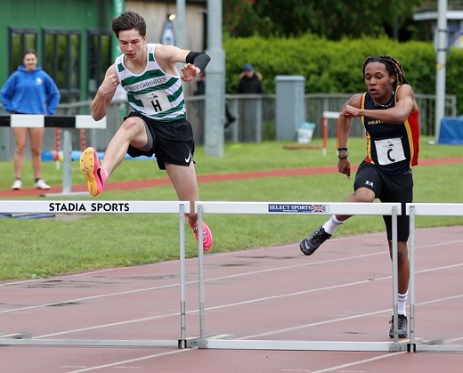 Joseph not satisfied with just the hurdles was there again in the 1500m S/C with 2nd in b-string: 5m 13.44sec, while Aidan O'Driscoll was a-string 3rd in: 4m 59.13sec. To the field again and Leo Everitt was 5th in the Long Jump: 4m 76cm and William Muffett was b-string 3rd with a distance of: 4m 66cm, Leo also went on to take part in the High Jump and finished 5th with 1m 40cm. Jaheim Roman was 3rd in a-string Shot Put: 9m 73cm and Kofi Amoateng was 2nd b-string with: 7m 70cm. In the Discus Alex Foster came 3rd with: 22m 09cm and Oliver Clifton was 1st in b-string with: 20m 42cm, Oliver also did the Hammer a-string with a throw of: 17m 96cm, unfortunately Leo Everitt didn't record a mark. Javelin was the last throws event and Oliver was 1st a-string: 31m 69cm and Aidan O'Driscoll came 1st in b-string: 14m 14cm. In the 4x100m team (Alex Foster, Kofi Amoateng, Jaheim Roman & Lucas Emeagi) came home triumphantly in 1st place with a time of: 45.04sec, whilst William Muffett, Oscar Eaton, Harry Stockill & Lucas Emeagi were 2nd in the 4x400m in a time of: 3m 40.70sec.
