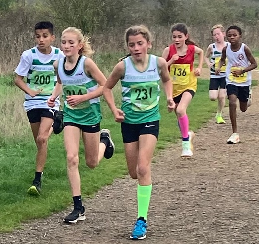 Rosie Barron (3rd) continued her fine form and was just behind the leaders with the softer conditions starting to suit Rosie’s love of mud! Teammate Phoebe Quorn (4th) was once again in hot pursuit of the leading pack and looks strong. Nola Glover-Hammond (7th) took a huge leap forward from 16th position in the first race as she builds her competition experience. Kaya Affleck (8th) once again secured a top ten position with a great run and lead home a great group of young athletes, many making debuts. Phoebe Woods (9th), Angelica Povilaitis (10th), Esme Cherry (11th), Emilia Herbert (12th), Dulcie Qureshi (14th), Lula Qureshi (16th), Clementina Monti (17th) and Ayda O’Driscoll (18th).