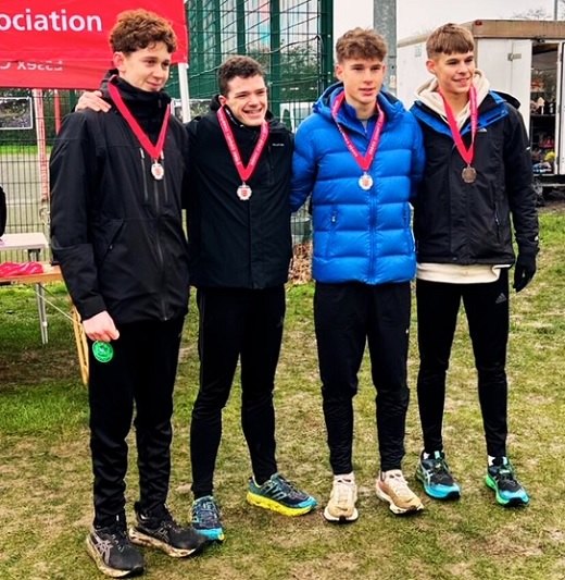 Josh Stephenson (13th) had a better experience and ran well, finishing just outside the top ten in 22mins 29s. He was delighted. Teammate William Muffett (15th) had been unwell over New Year but bravely ran for the team to ensure they had 4 athletes to score. He ran 23mins 11s and secured the points for the team. Aidan O’Driscoll (16th) is another coming back to fitness after injury and started to find his feet in this race, looking strong finishing in 23mins 20s to close the A team.