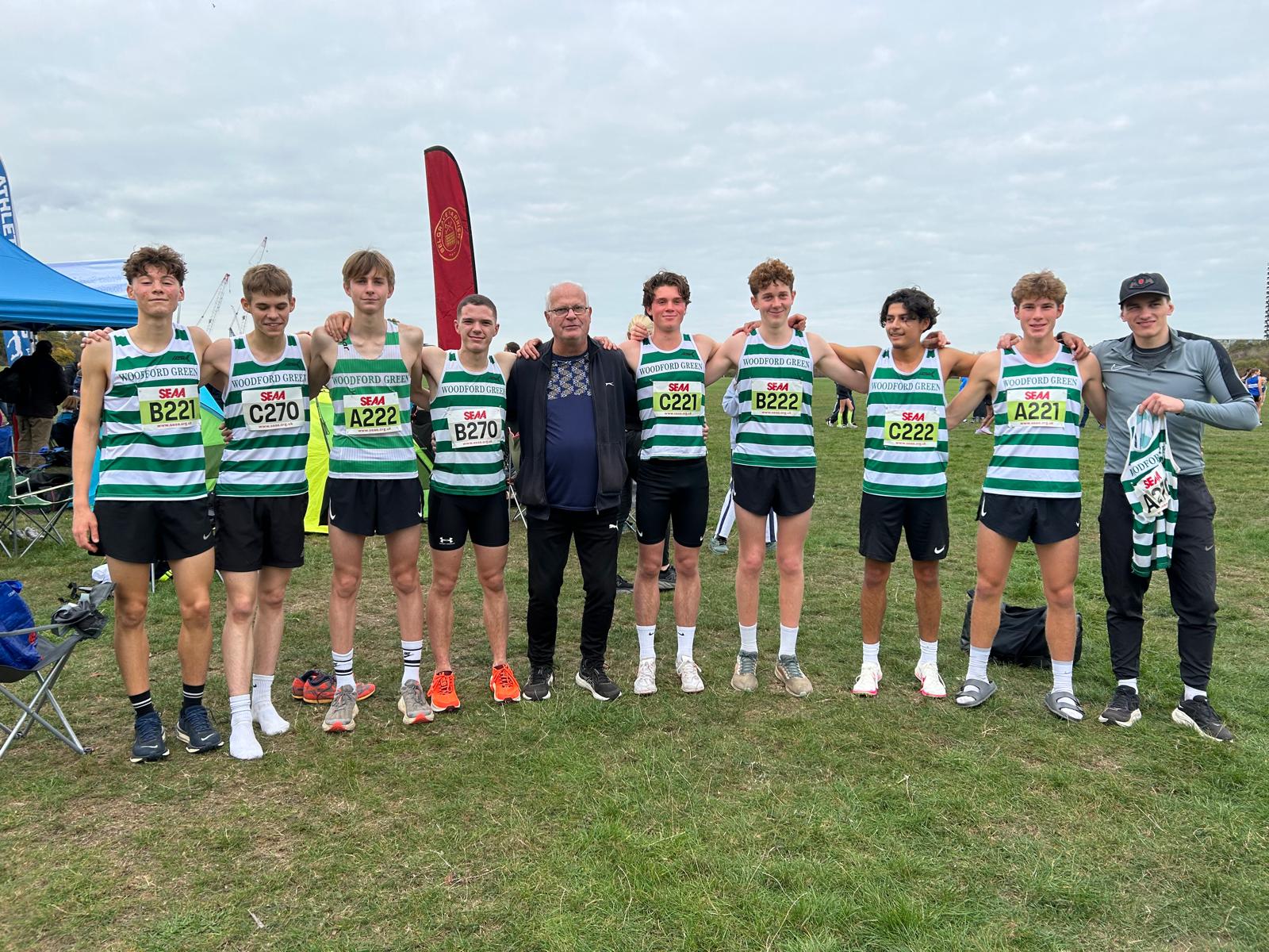 We had two teams from a starting field of thirty teams. Harry Stockill started the ball rolling for the Woodies and had an excellent run placing third, just five seconds down on the leader, Caspian Holmes from Herne Hill. Harry recorded 8 mins 39 for the 2.9k, worth under 9 minutes for 3k against the Herne Hill runner posting 8 mins 34. Luka Norden took over on leg 2 and chased after the two teams in front and was able to pass the Chiltern runner. Late on, though, Eastbourne Rovers in the form of Lumber-Fry and Bracknell's Ben Lucas got past our man. Still Luka came in 4th with all to play for on the last leg. Luka returned 8 mins 51 for the 2.9k circuit. Oscar Eaton took over on the last leg and managed to pass both the Herne Hill and Bracknell runners to go into 2nd place but Havering with Freddie Rowe (a 3 mins 44 1500 runner) was having an inspired race clocking 8 mins 14 for his leg to sweep through for the title. Oscar hung onto third place to give us our first set of medals at this event. Oscar ran 8 mins 40, so just eleven seconds separated our three boys. We were just twenty seconds shy of first place.