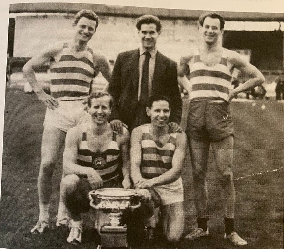 Meanwhile a Woodford Green AC 4 x 110 yards team, coached by Ron Bowden, won the AAA (national) title in 1961, 1962 and 1964. One of Ron's club teammates was David Jones, a fellow member of the GB squad. Ron won 12 Welsh sprint titles.