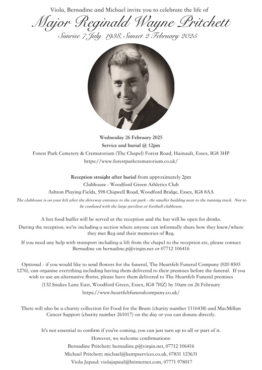 Reg Pritchett funeral details